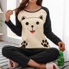 Осенний тонкий комплект из 2 предметов пижамы для женщин из хлопка с круглым вырезом для девочек, пижамные комплекты с изображением медведя, чайной чашки, кота, полная пижама, топы, пижама