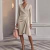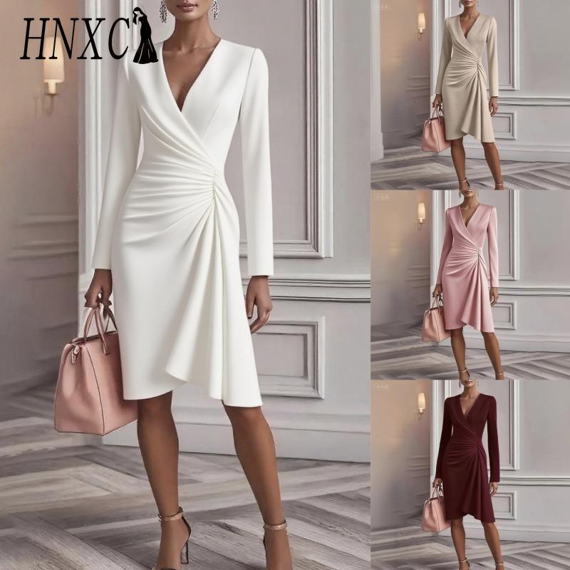 HNXC Женская мода осень-зима сплошной цвет печати с длинным рукавом V-образным вырезом повседневные платья