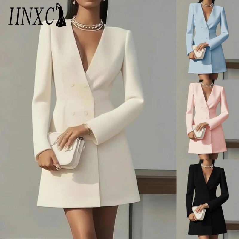 HNXC Женские модные осенне-зимние однотонные повседневные платья с длинным рукавом и v-образным вырезом с принтом — купить товар онлайн с бесплатной доставкой по всему миру!