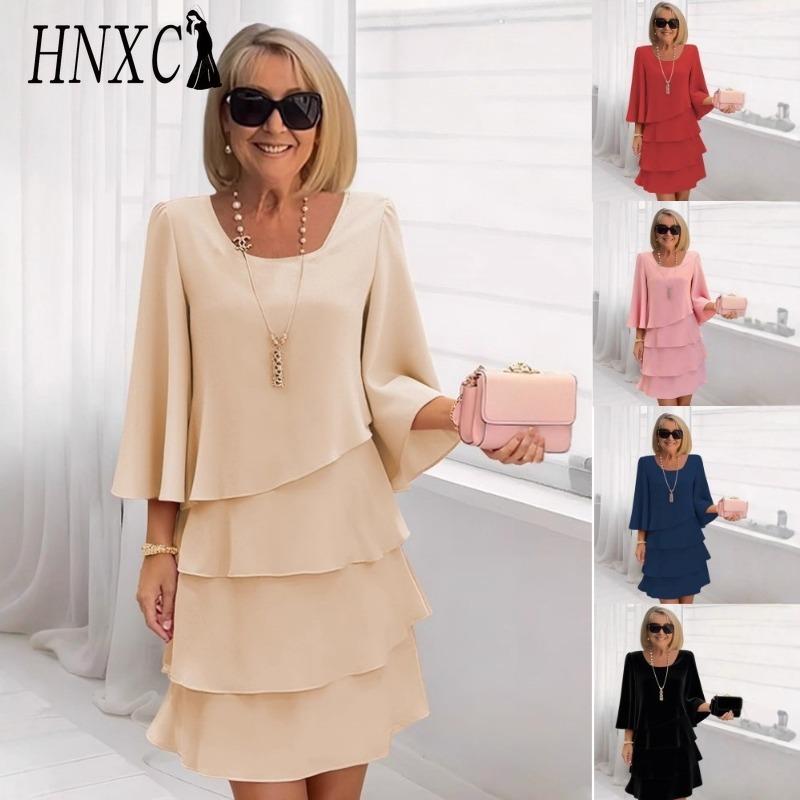 HNXC Женские модные летние весенние однотонные с принтом платья с рукавом 3/4 с V-образным вырезом повседневные