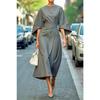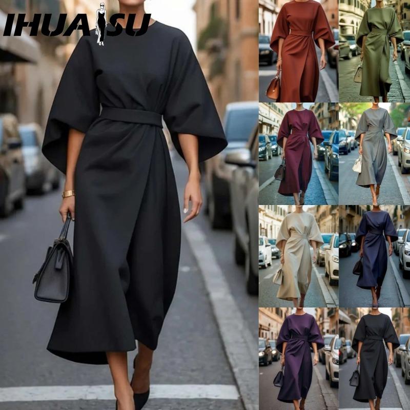 IHUASU Женская мода лето весна сплошной цвет печати рукав 3/4 с круглым вырезом повседневные платья