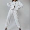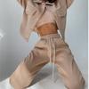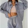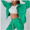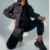Однотонный женский комплект из двух предметов, модный свитшот с длинными рукавами, пальто на пуговицах с лацканами и брюки, спортивный костюм, осенне-зимний повседневный комплект для женщин