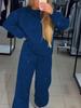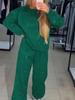 Женский однотонный спортивный костюм, повседневный топ с длинным рукавом и брюки с широкими штанинами