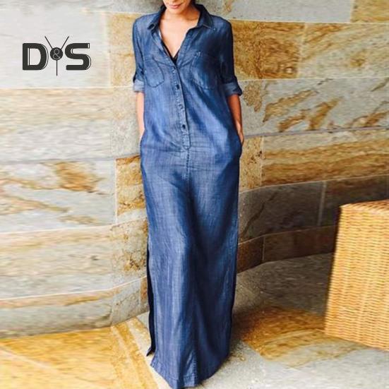 Это платье, выполненное из легкой, мягкой и дышащей джинсовой ткани, можно надеть с обувью на высоком каблуке или милыми сандалиями, чтобы создать шикарный образ, или надеть с джинсовой курткой и кроссовками для повседневного весеннего или осеннего наряда.. Завышенная линия талии и закатанные рукава придают этому длинному платью дополнительную элегантность.