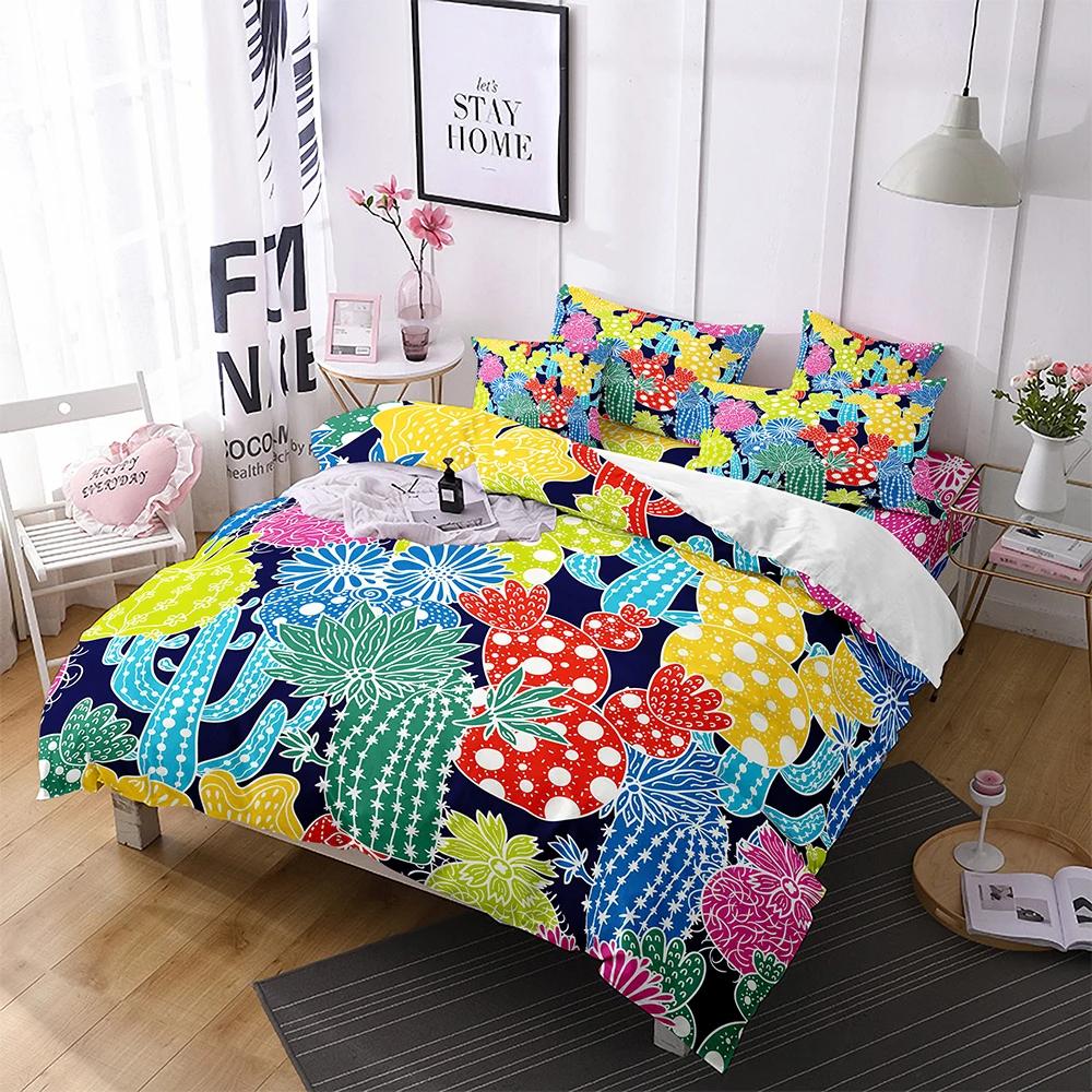 Мультяшный кактус король королева пододеяльник набор постельного белья суккулентные растения для взрослых зеленый тропический пустынные растения полиэстер пододеяльник