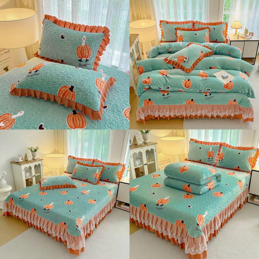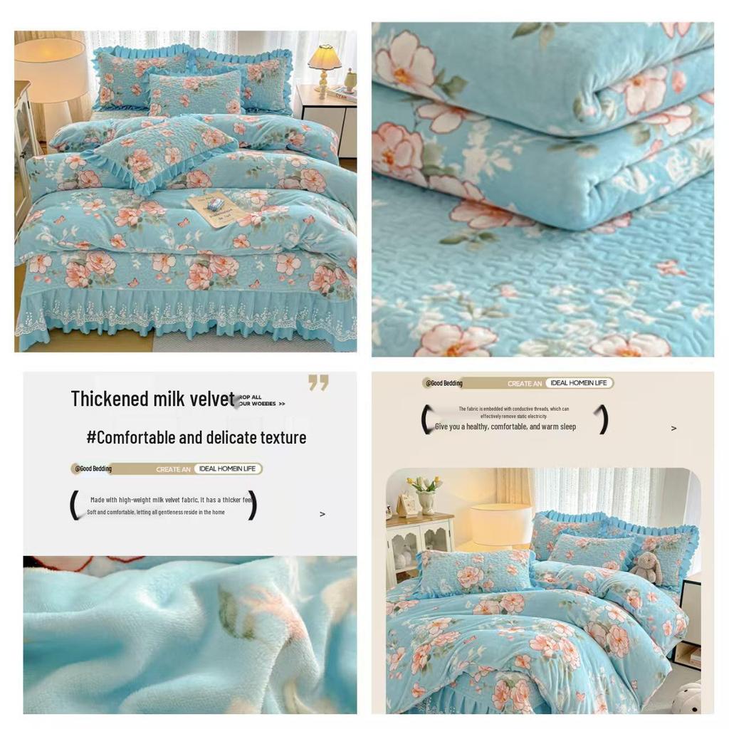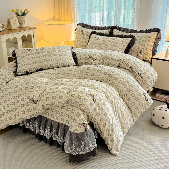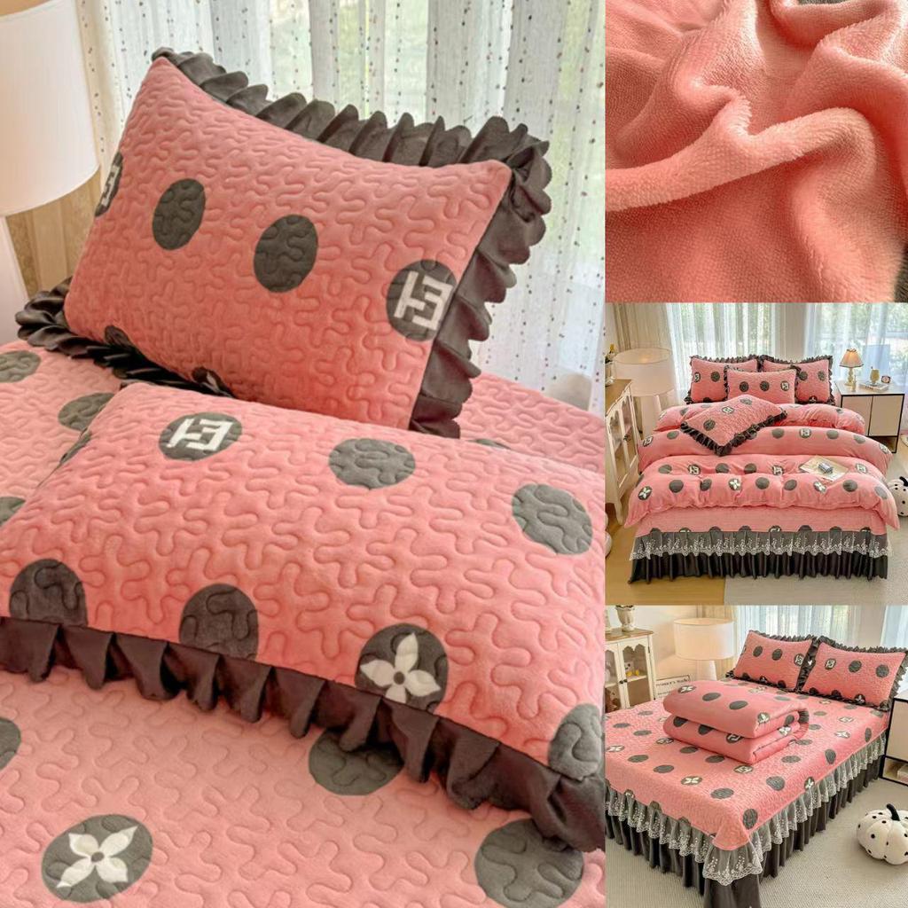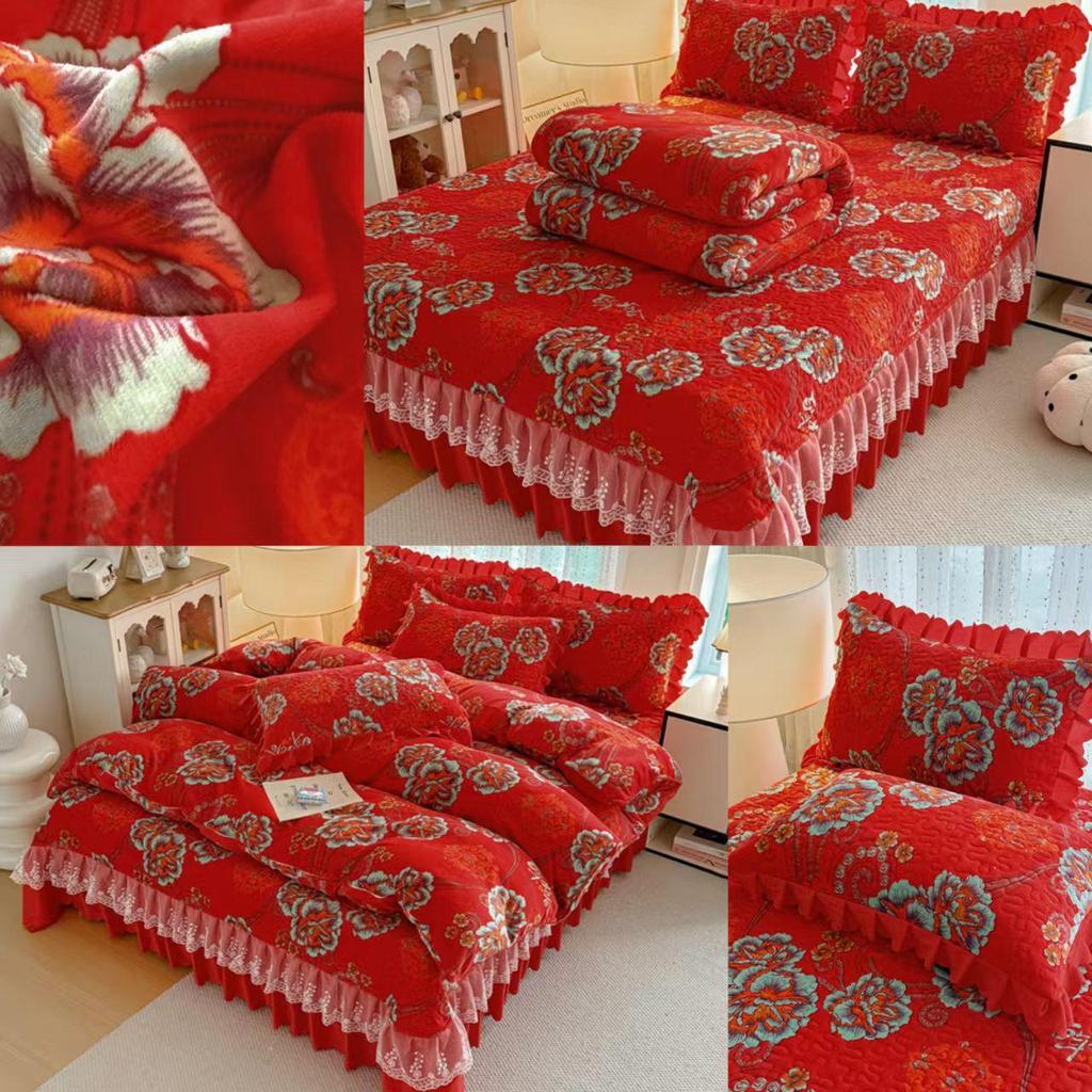 Утолщенный стеганый бархатный комплект покрывала с кружевными наволочками и тепловым контролем с защитой от статического электричества