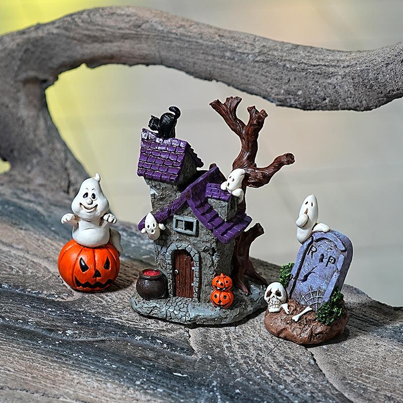 Хэллоуинский демон дерева дом с привидениями кресло-качалка милое украшение ручной работы настольное украшение призрак человек в черной машине смоляное украшение