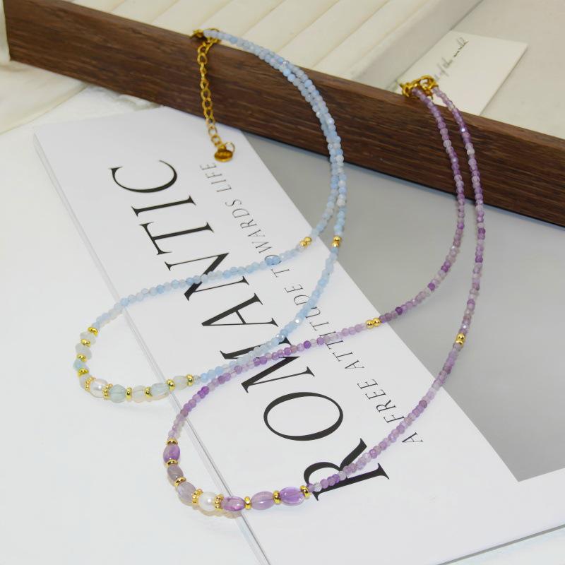 Весенне-летний жемчужный и аквамариновый кристальный аметистовый колье - Идеально для студентов и лучших друзей