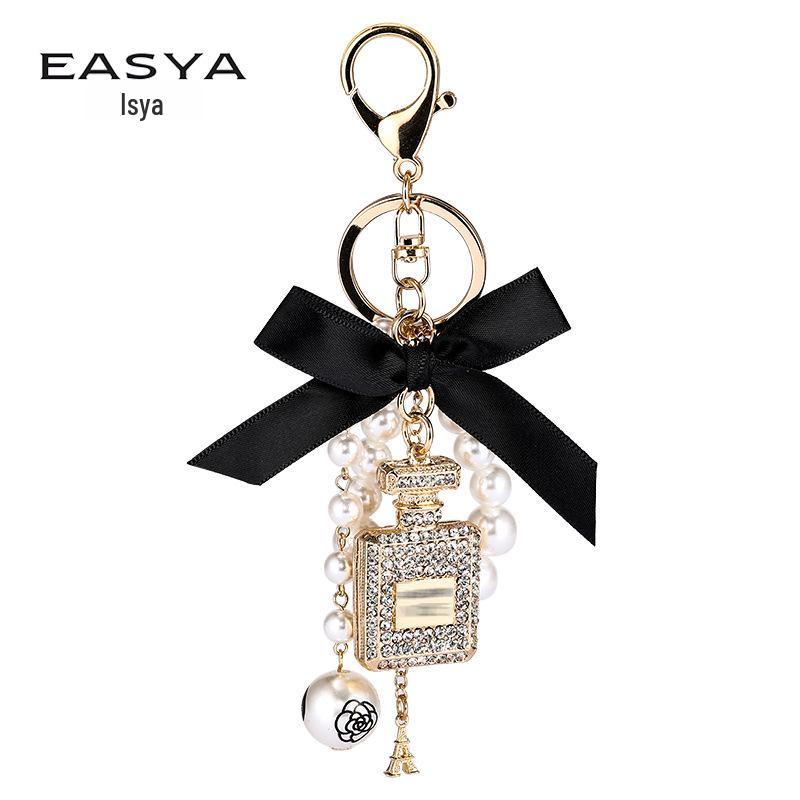 Ручная работа, корейский стиль, брелок-бутылочка для духов со стразами, бантом и жемчужной подвеской — купить товар онлайн с бесплатной доставкой по всему миру!