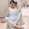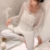 Французский винтажный кружевной женский пижамный костюм из двух предметов, женский, с длинным рукавом, рюшами, брюки, пижама принцессы, свободный крой, повседневный домашний костюм