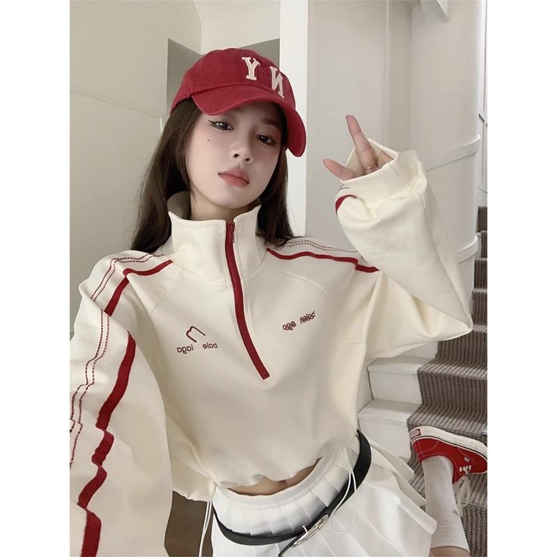 Half Zipper Sweatshirt Autumn Womens Leisure Jacket Design Sense Autumn Latest Large Size Long Sleeve Drawstring Short Top — купить товар онлайн с бесплатной доставкой по всему миру!
