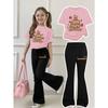 Милый набор с капибарой для детей, короткий рукав, розовая футболка с рисунком капибары, круглый вырез, расклешенные брюки — купить товар онлайн с бесплатной доставкой по всему миру!