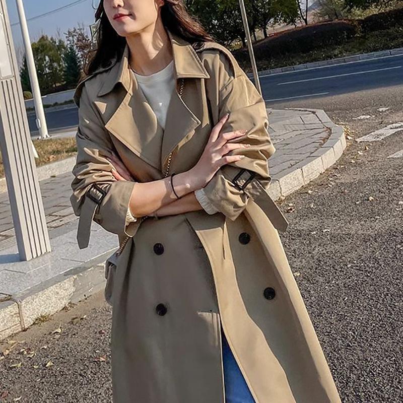 Женский тренч однотонный средней длины Маленький Обновленный Весна и Осень Осенний Корейский Пальто