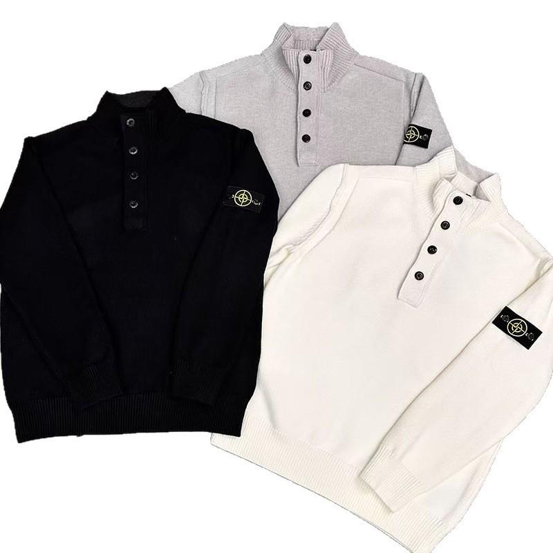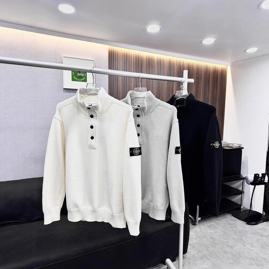 Stone Island Новый осенне-зимний шерстяной свитер-пуловер с молнией на пол-лица и высоким воротником