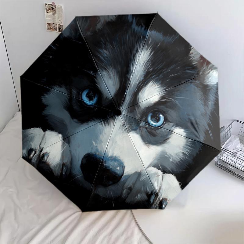 Black Husky pattern, automatic folding umbrella, portable and foldable design, 8 ribs, a Christmas or birthday gift.