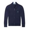 Men's Slim Fit Stand Collar Cardigan Sweater with Small Horse Logo - Spring & Autumn Long Sleeve Knitwear