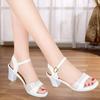 Летние Сандалии Женские На Высоком Каблуке Толстом Каблуке Рыбий Ротик Средний Каблук Пряжка с Патентной Кожей Цветовое Сочетание Мать Женская Обувь