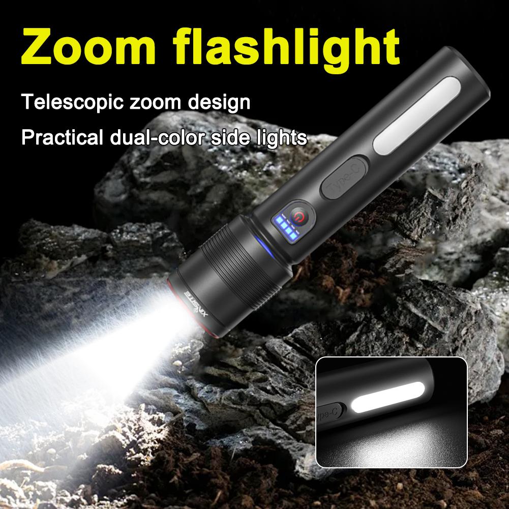 USB Rechargeable LED Flashlight, Super Bright With COB Sidelight, Waterproof, Zoomable,Ideal For Emergencies,outdoors