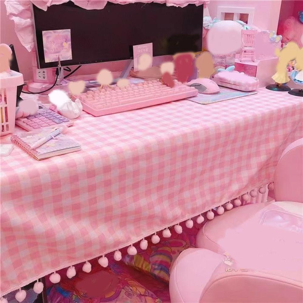 Девочки Горячий Розовый Скатерть Ins Милый Клетчатый Настольная Ткань Общежитие Компьютерный Обои Коврик Новая Кавайная Украшение Комнаты Покрытие Стола