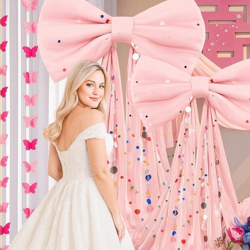 Bow 50x38cm Giant Bow Wall Backdrop Pink Iridescent Wine Red B Ribbon Wall Decoration Large Velvet Champagne Color