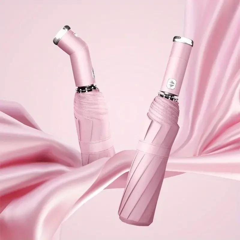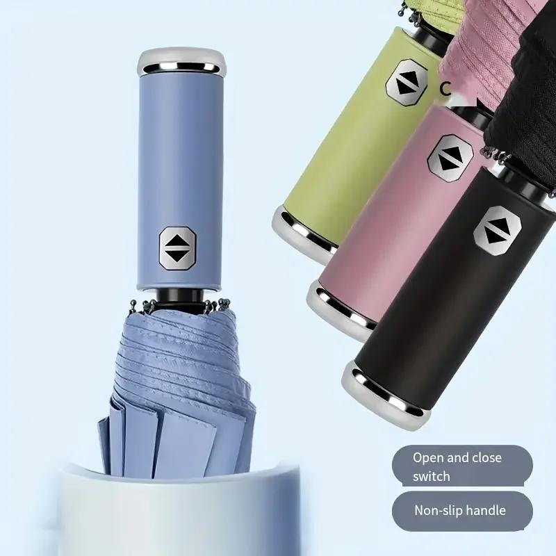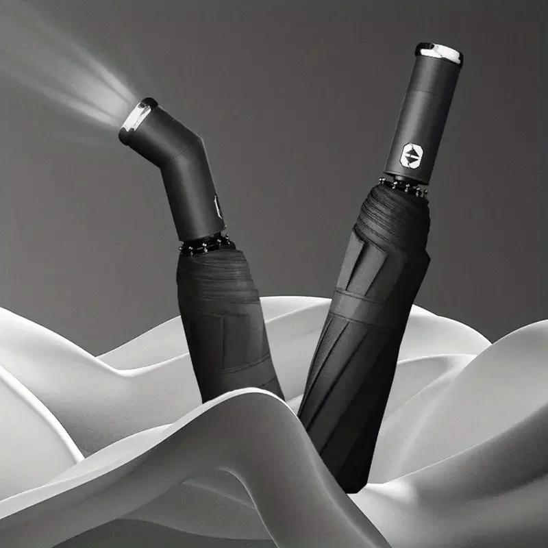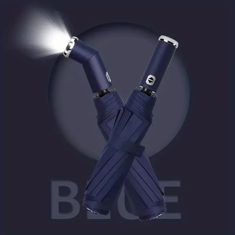 Полностью автоматический обратный складной зонт со светодиодным фонариком, 10 ребер, ветрозащитные УФ-зонты со светоотражающей полосой для дня солнца или дождя