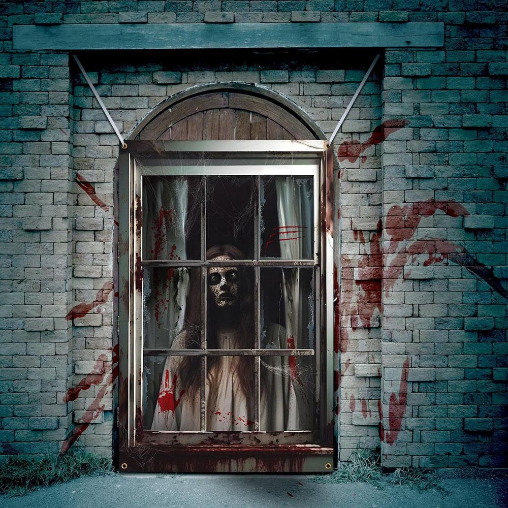 2Pcs Halloween Ghost Curtain Scary Blood Ghost Skull Window Cover Halloween Window Poster Decorations for Outdoor Party Decor — купить товар онлайн с бесплатной доставкой по всему миру!