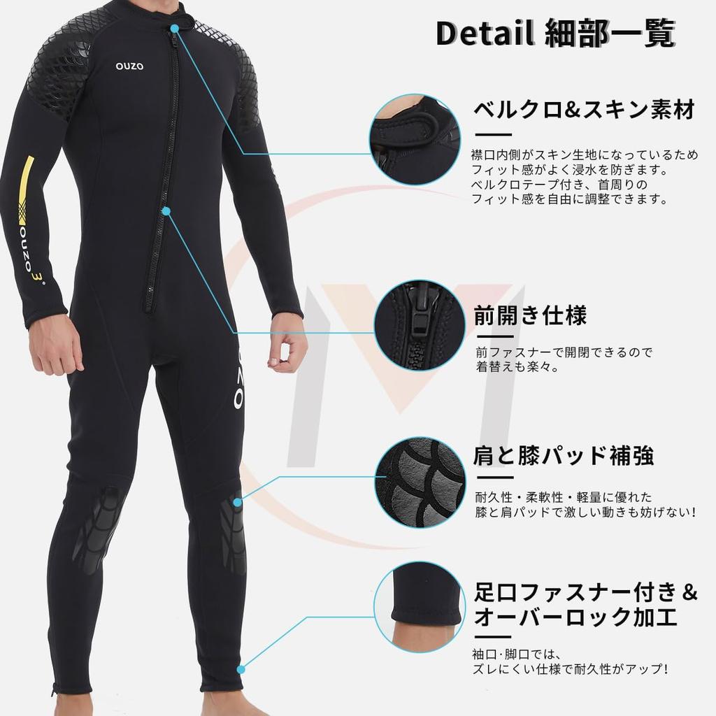 MORGEN SKY Men's Full Wetsuit, Front Zipper, 3mm, One-Piece, for Surfing, Spearfishing, and Spearfishing, BJ03 (L)