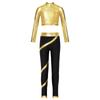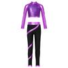 Girls Figure Skating Outfit Mock Neck Long Sleeve Sequin Shiny Crop Top Metallic Striped Pants Dance Costume