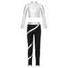 Girls Figure Skating Outfit Mock Neck Long Sleeve Sequin Shiny Crop Top Metallic Striped Pants Dance Costume — купить товар онлайн с бесплатной доставкой по всему миру!