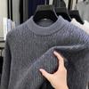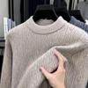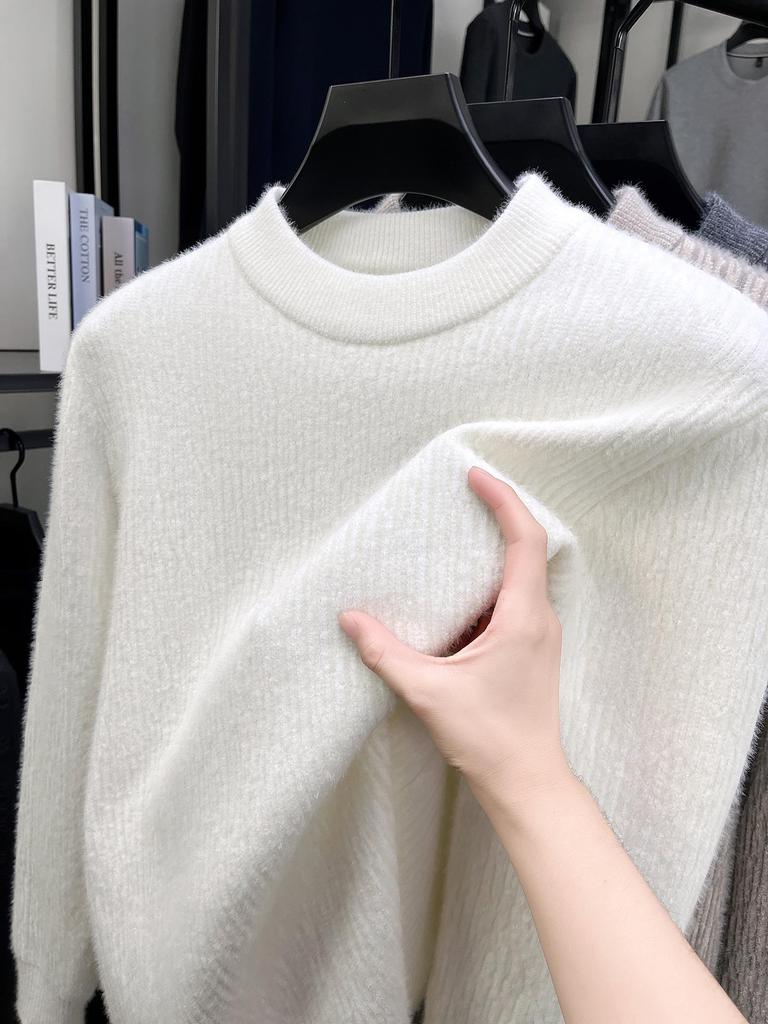 Men's Ferret Velvet Knit Fleece Pullover: Warm Round Neck Casual Fashion Base Layer Sweater