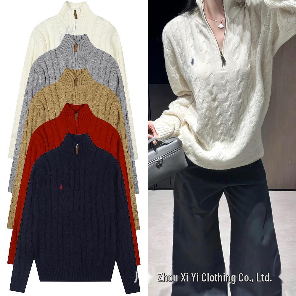Ralph Women's Thick Knit Half Zip Stand Collar Sweater — купить товар онлайн с бесплатной доставкой по всему миру!