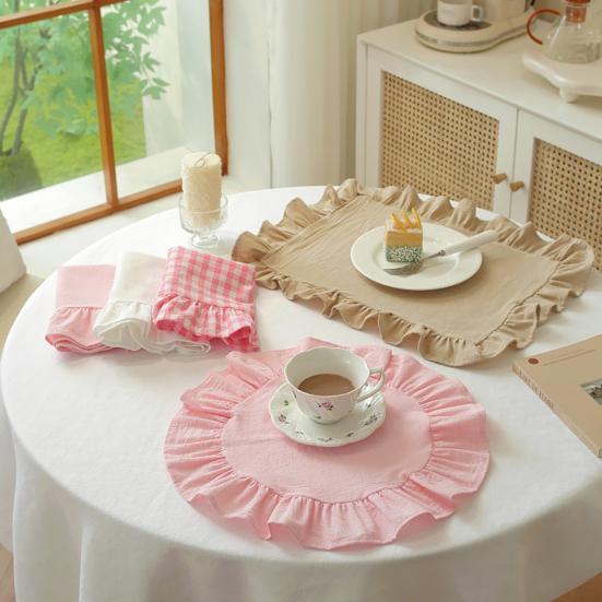 1/2 шт. Кухонная салфетка под тарелку Квадратная Круглая Стиранный Хлопок Настольные салфетки со складчатыми краями Термостойкие для Столовой Дома Кухни Вечеринки Салфетки под тарелку