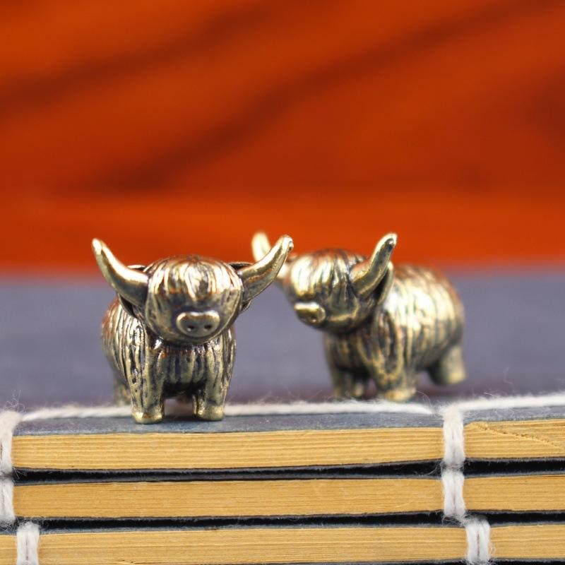 Миниатюрная ретро-скульптура из латуни настенная «Шотландский крупный рогатый скот», ручная игрушка, подарок, брелок, украшение для дома, офиса, стола