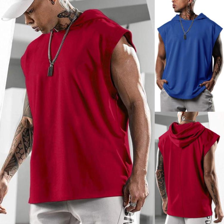 Мужская спортивная жилетка без рукавов с капюшоном - Повседневный европейский и американский стиль, Большой размер, Свободный крой