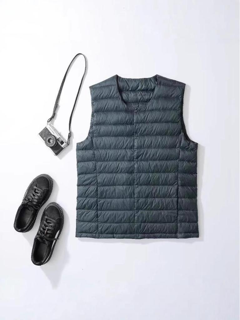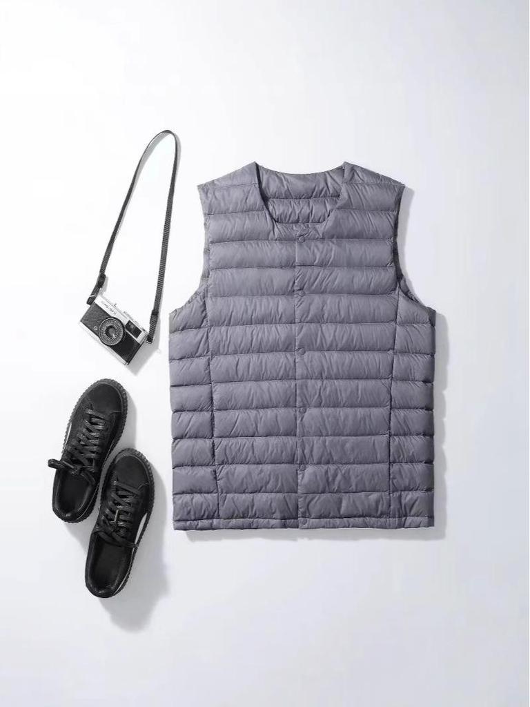 Stay warm and stylish during the colder seasons with this collarless lightweight down vest, designed specifically for men. Featuring a regular fit and sportive style, this vest is perfect for any casual or active outing. Its thin outerwear thickness makes it ideal for layering, while the solid pattern and button closure provide a clean, sleek look. Choose between V-neck and round neck options to suit your preference. Crafted from high-quality polyester material and filled with cozy duck down, this vest ensures comfort without compromising on warmth.