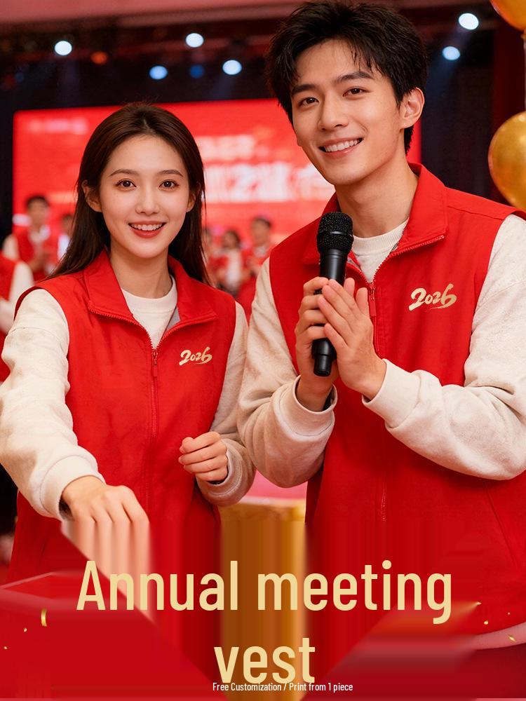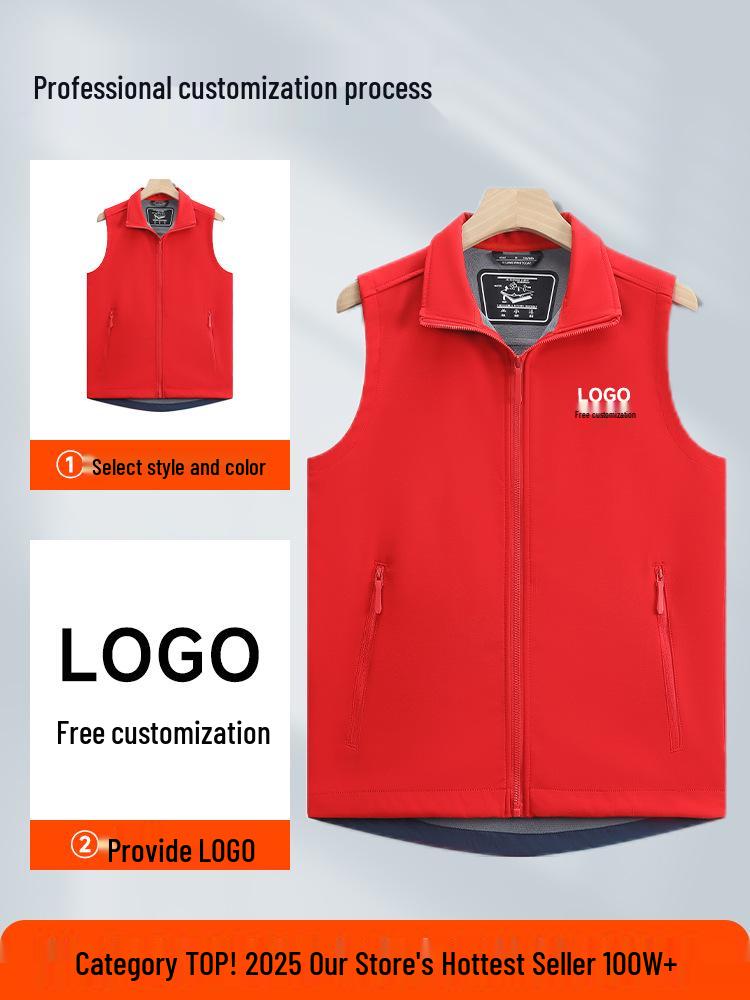 Custom Logo Softshell Vest: Autumn/Winter Red Jacket with Stand-up Collar for Annual Meetings and Events