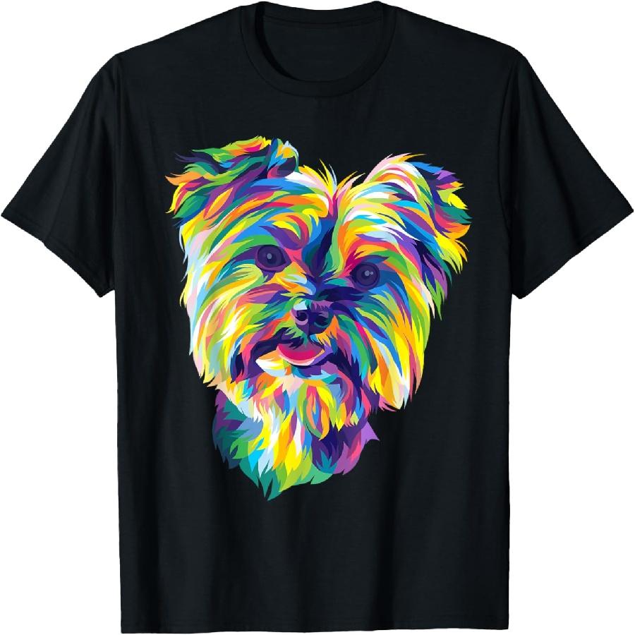 Яркая Поп-арт Портретная Футболка с Йоркширским Терьером для Любителей Йорков(1)