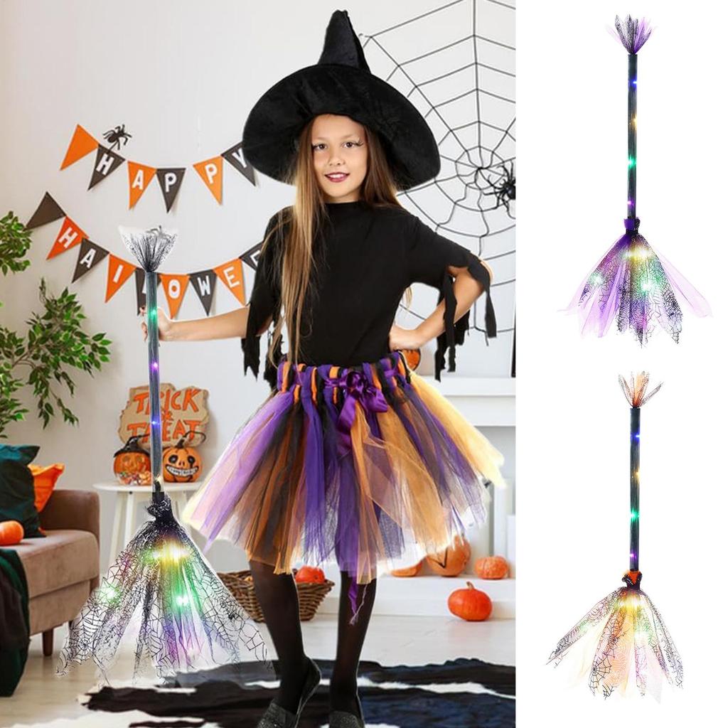 Witch Broom Kids Broom Stick Halloween with LED Lights Cosplay Props Witch Costume Accessories Cosplay Props