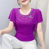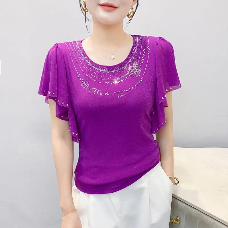 Летний Новый Дизайн Модный Уникальный Ожерелье Форма Цветка Горячий Алмаз Круглый Вырез Сетка Универсальный Все Сочетается Женский Элегантный Топ