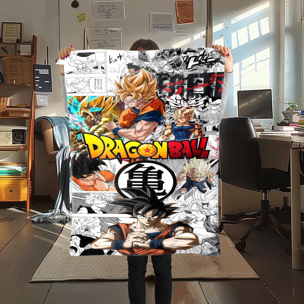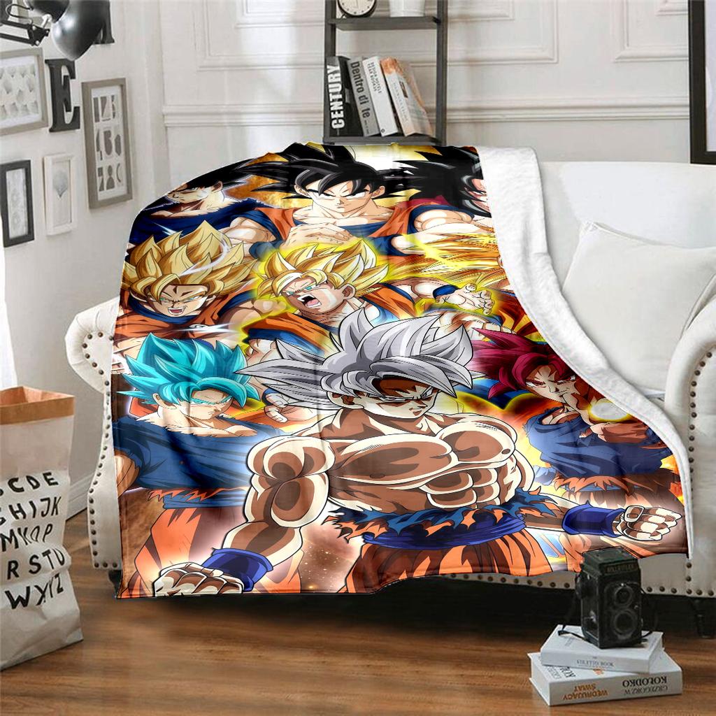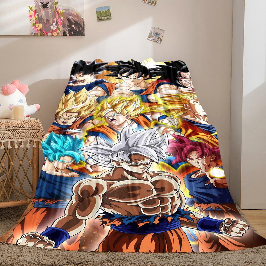 1 шт. Фланелевое одеяло с принтом Сон Гоку, Высокое качество, Для всех сезонов, Декор для дома, Тепло и уют, Идеально для рождественских подарков