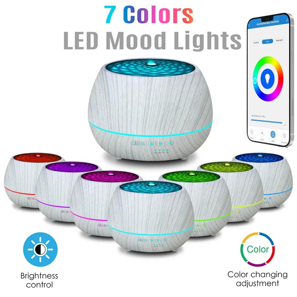 500ml Essential Oil Aroma Diffuser Smart WiFi Air Humidifier Support Tuya Alexa Google Home 7 Colorful LED Light App Control