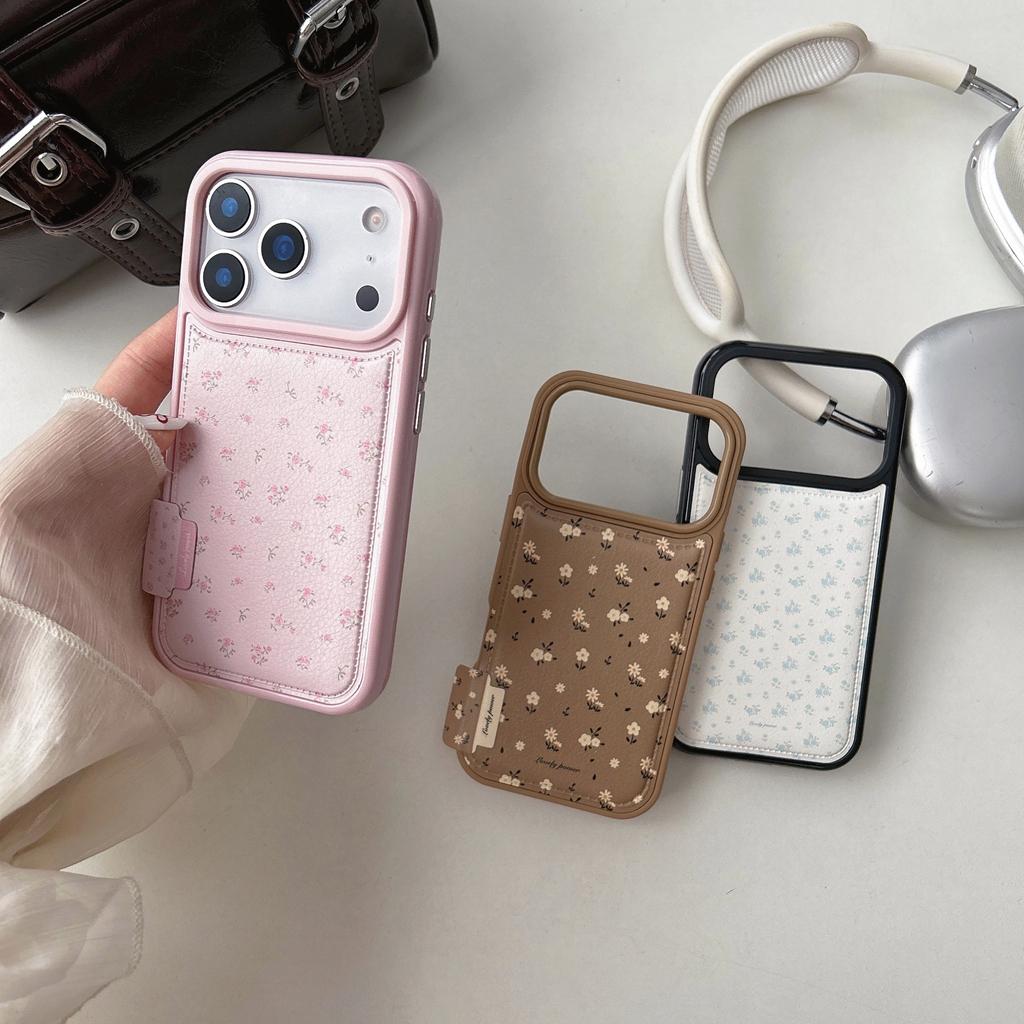 Серия 'Нежные Романтичные Цветы' Однотонный Кожаный Ударопрочный Защитный Чехол для Телефона для iPhone 17 16 15 14 Pro Max