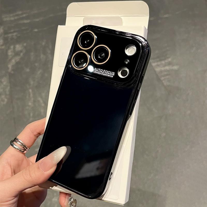 Luxury Auto Glass Phone Case for iPhone 17 Air 16 15 14 13 12 11 Pro Max Plus Shockproof Glossy Reflective Armor Cover