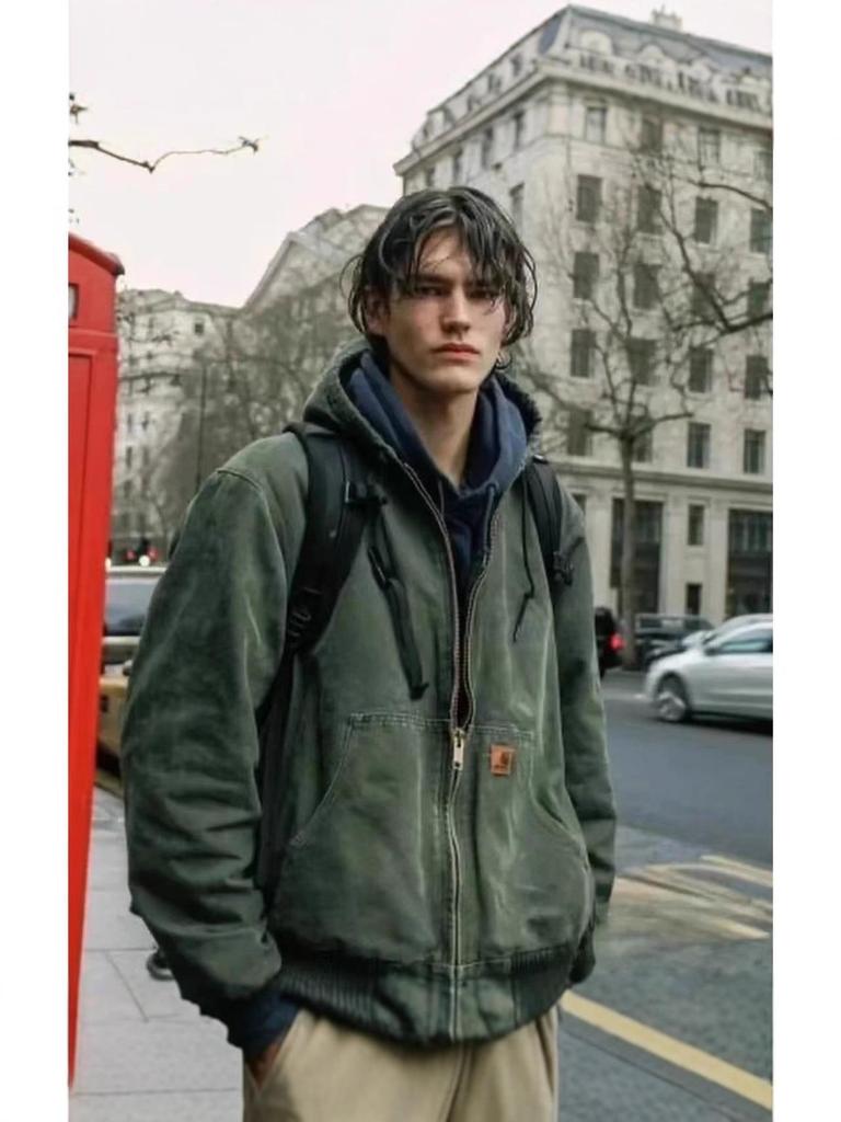 Мужская утепленная куртка с капюшоном Carhartt J130 из плотного стираного холста