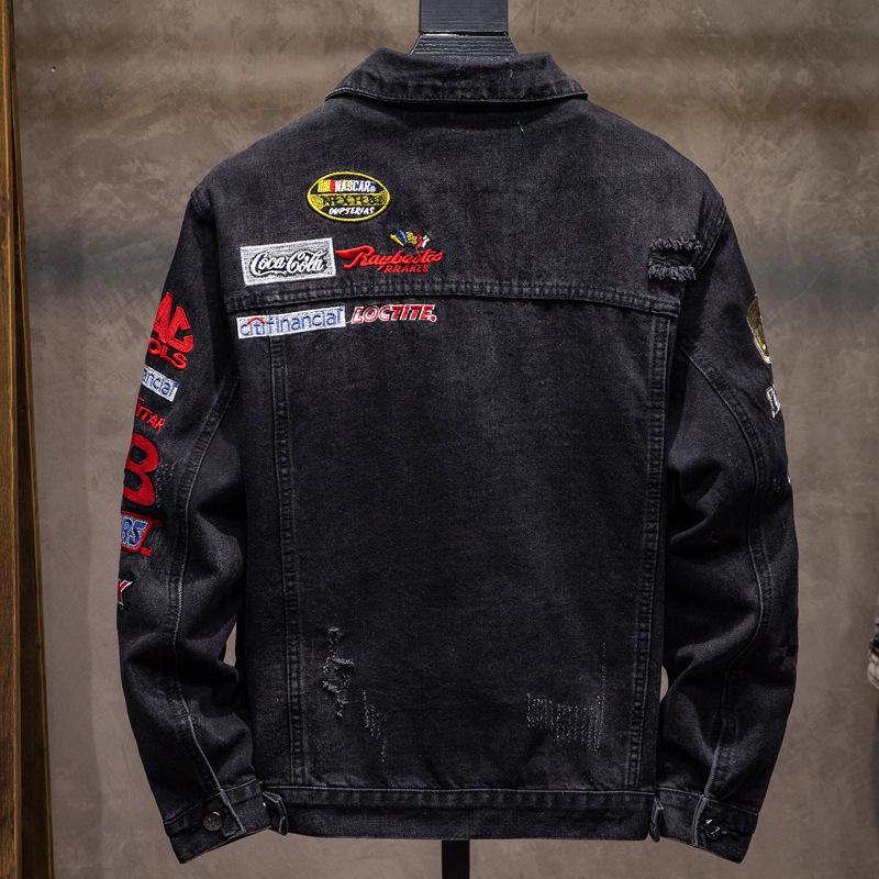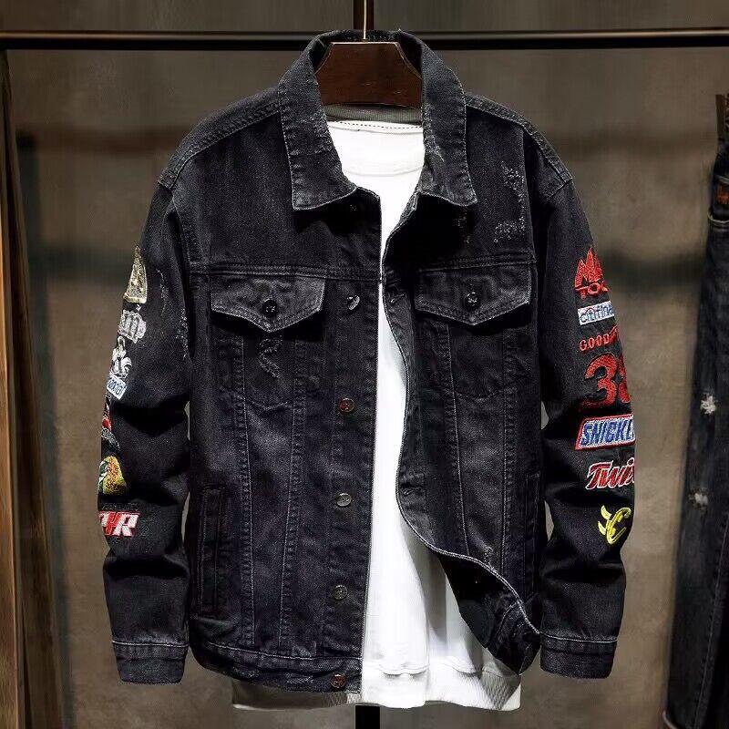 Мужская рваная джинсовая куртка с вышивкой - Свободная, модная, повседневная весенне-осенняя куртка с длинным рукавом от Tide