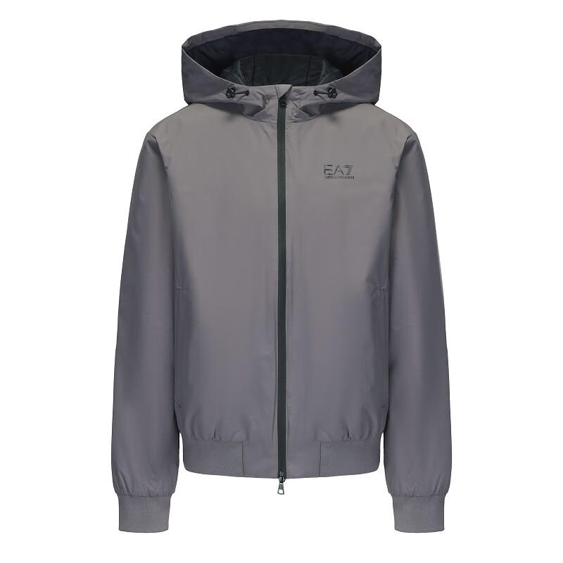 Emporio Armani Ea7 Осень/Зима 24 Однотонная куртка с капюшоном на молнии с принтом логотипа-буквы Мужские куртки Серый 8NPB21-PNFZZ-1992