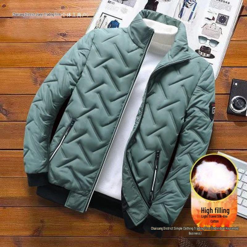 Мужская осенне-зимняя хлопковая куртка в корейском стиле с легким пухом и воротником-стойкой