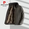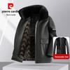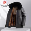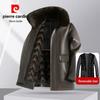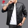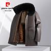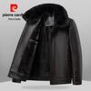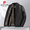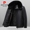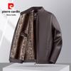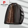 Мужская кожаная куртка Pierre Cardin 2025 с воротником-стойкой - Повседневная, Универсальная, Теплая, С подкладкой из бархата для мужчин среднего возраста