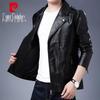 Мужская кожаная куртка Pierre Cardin 2025 с воротником-стойкой - Повседневная, Универсальная, Теплая, С подкладкой из бархата для мужчин среднего возраста — купить товар онлайн с бесплатной доставкой по всему миру!