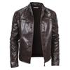 Мужская кожаная куртка с эффектом потертости 2023 года - Европейский и американский панк-стиль с воротником-стойкой